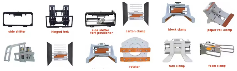 Kh.Lampiran: pengalih sisi, Kasut garpu, kedudukan garpu, pemutar 360 darjah, pengapit bal, pengapit gulungan kertas dan lampiran lain tersedia;